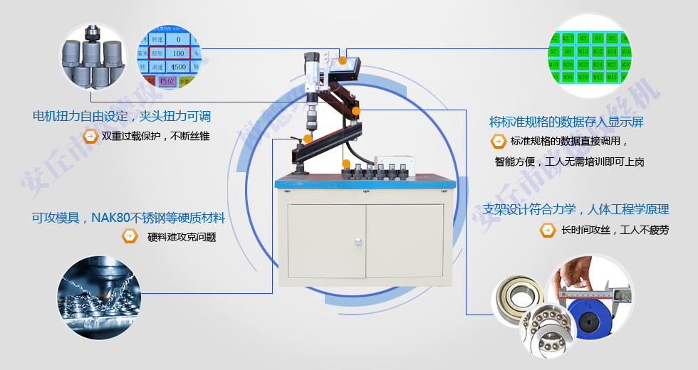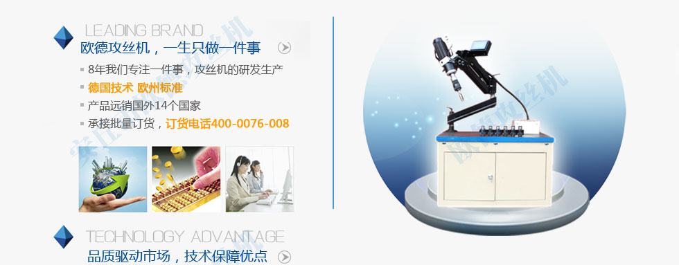質量求生存的方針,我們真誠歡迎新老客戶選用我公司產品。公司注冊資金1000萬元。公司以可靠的電動攻絲機質量和合理的價位打動眾多消費者。公司創造了一流的售后服務。我公司一如既往地堅持數控攻絲機服務第一的宗旨。我公司以只有最好的精神指導各項工作大力塑造品牌。我公司新廠區擁有齊全的現代化生產設備。充分利用區域和行業優勢。精誠服務贏信譽是我們的鋼筋上絲機質量方針。進取精神是企業能與時俱進的動力和發展的源泉。鋼筋上絲機